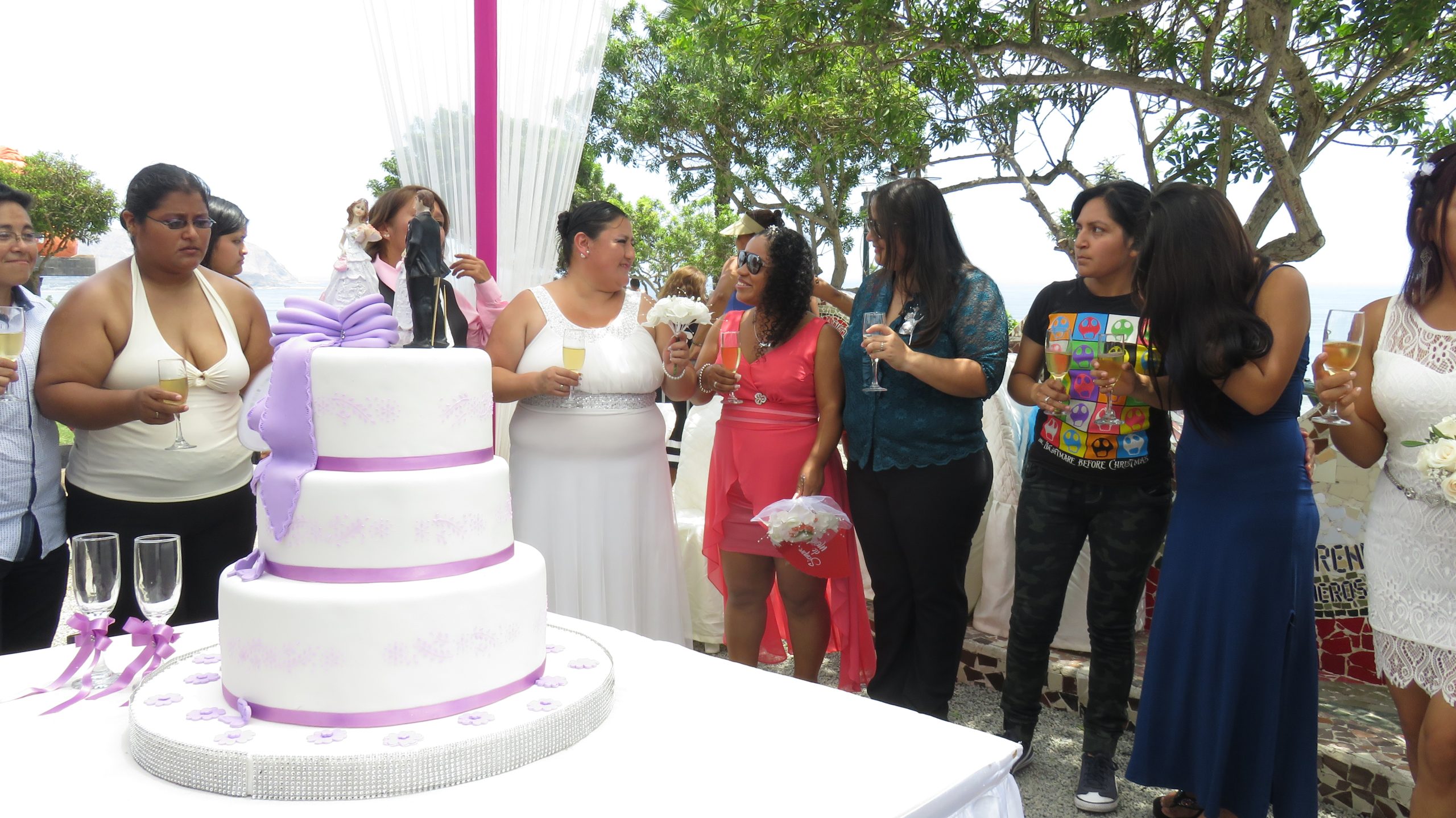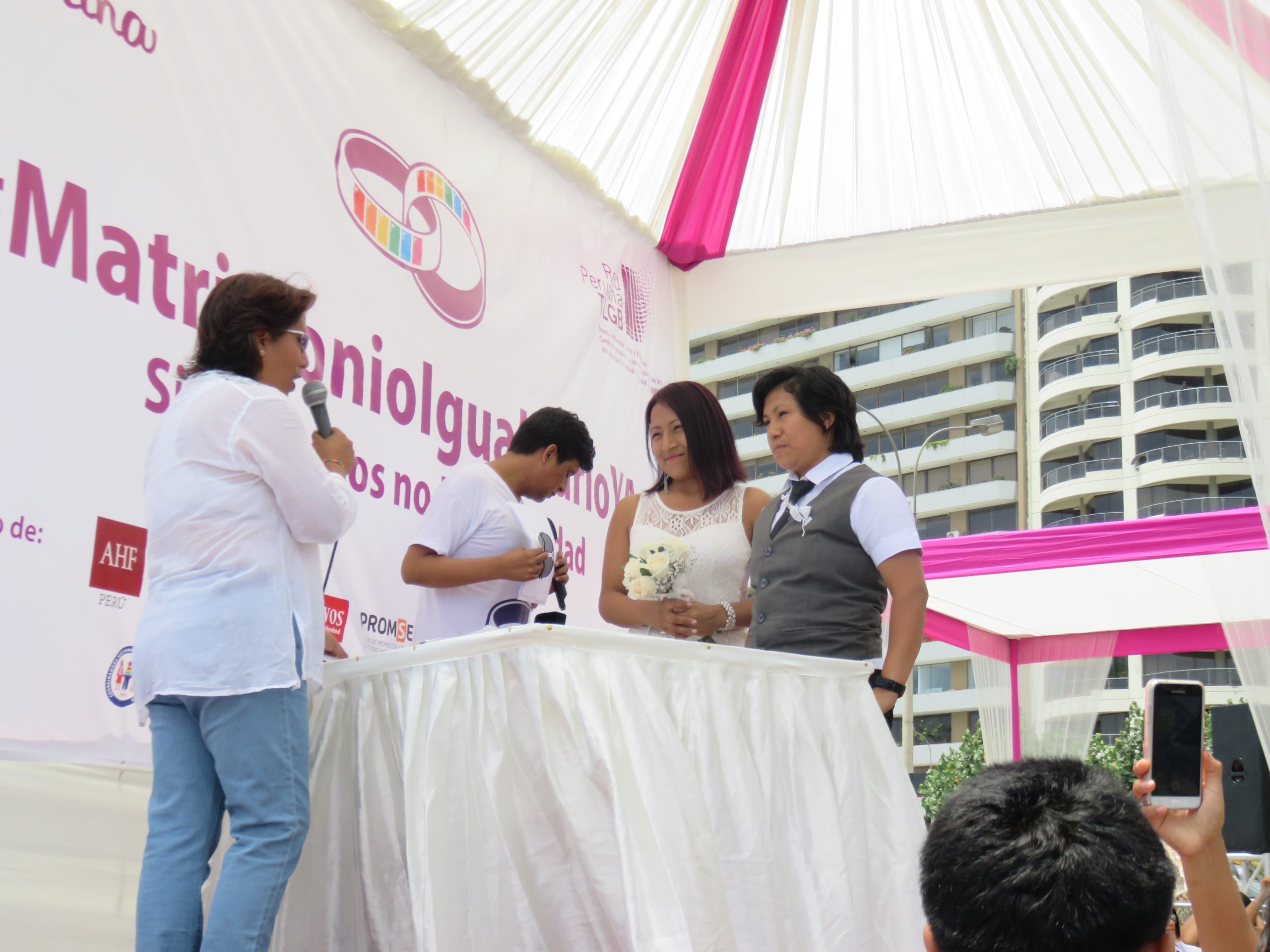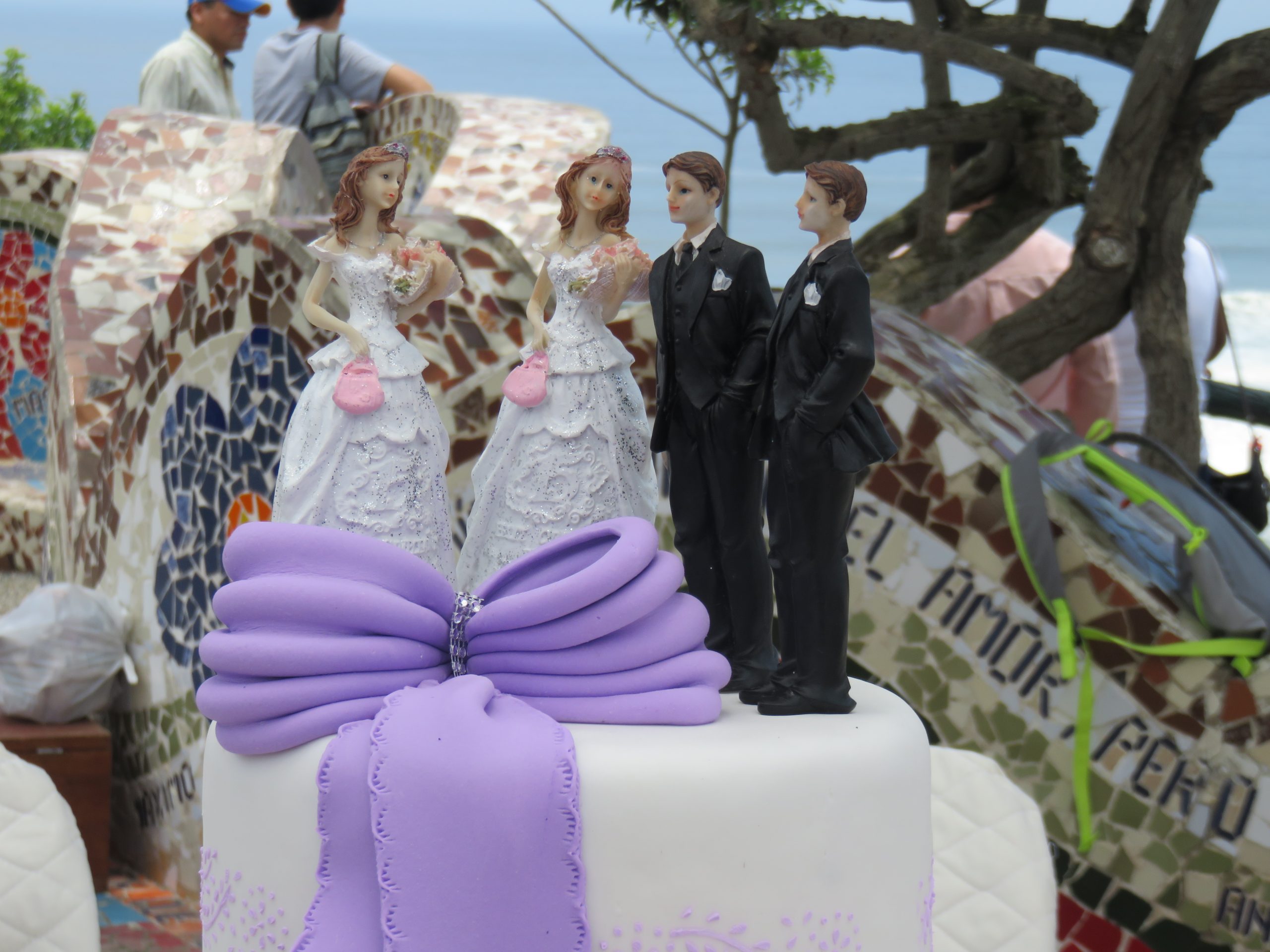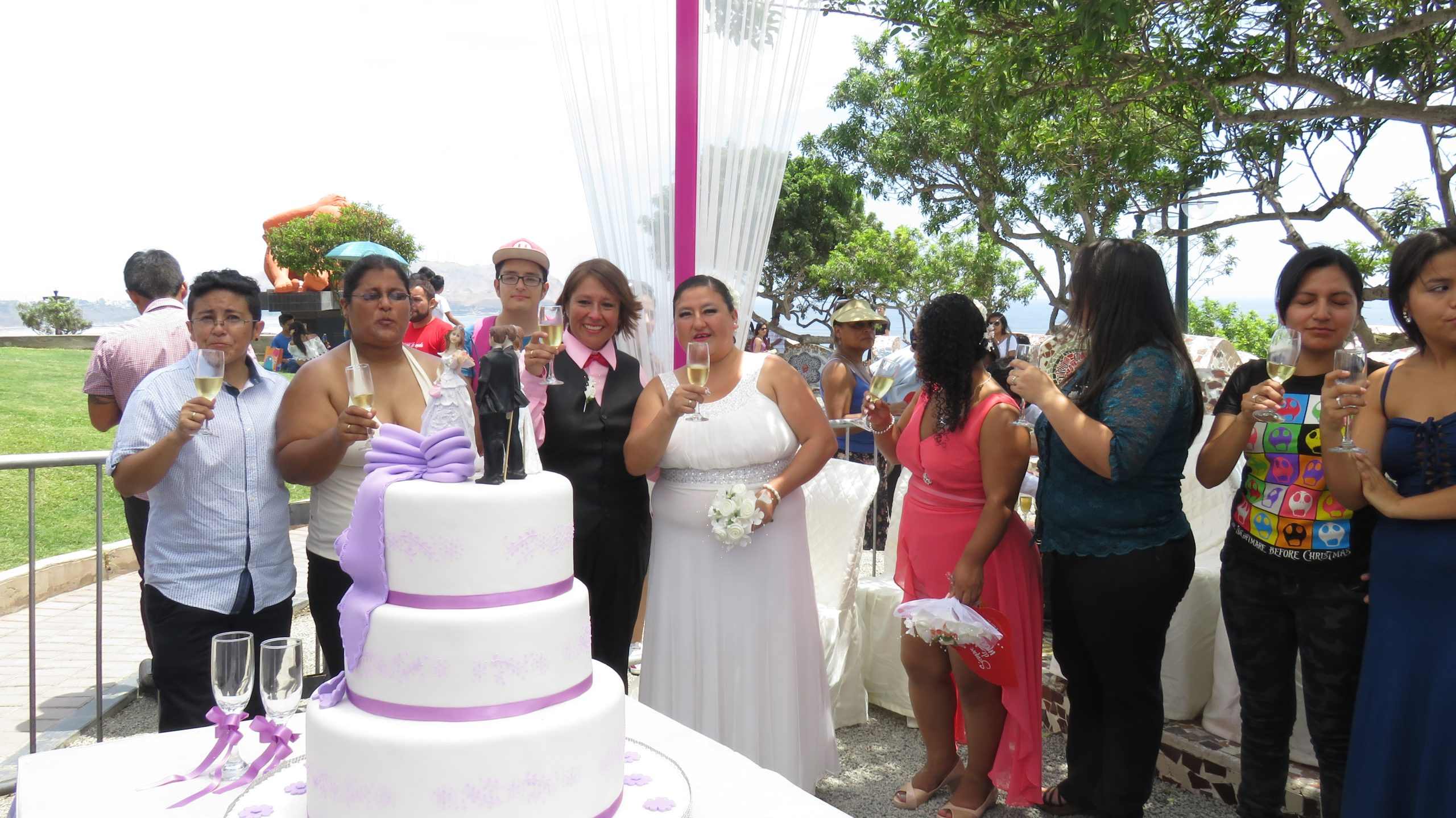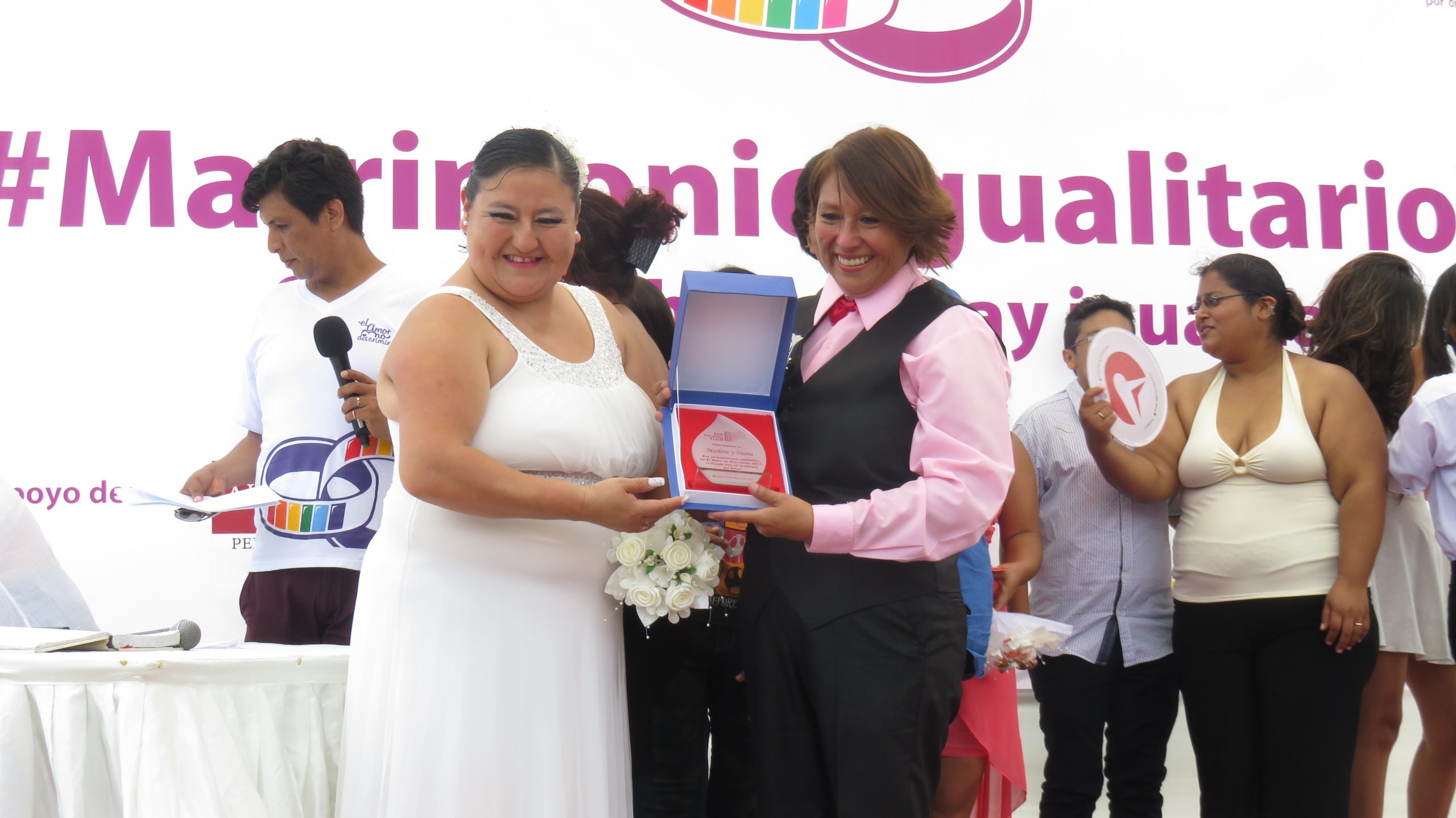 Lima, Perú.- Siete parejas conformadas por lesbianas, gays y trans se casaron simbólicamente en el Parque del Amor, luego de que parlamentarias del Frente Amplio presentaron públicamente su proyecto de ley de matrimonio igualitario en el Congreso de la República.