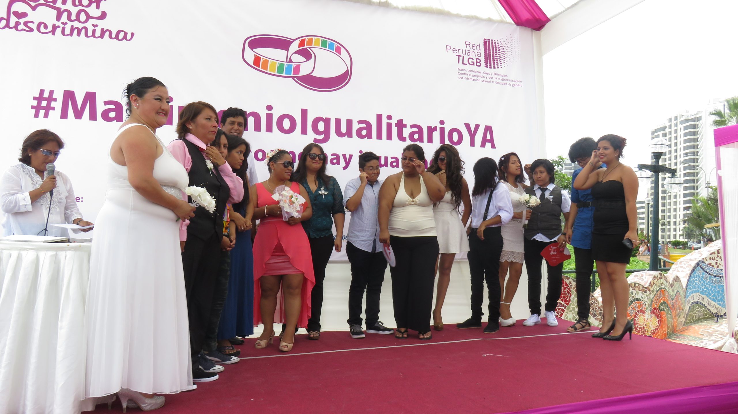 La mayoría de las parejas que se dieron se dieron el sí en el matrimonio, son lesbianas y trans masculinos, quienes coincidieron en exigir al parlamento peruano, aprobar la iniciativa legislativa presentada por las congresistas Indira Huilca y Marisa Glave, donde se modifica el código civil.