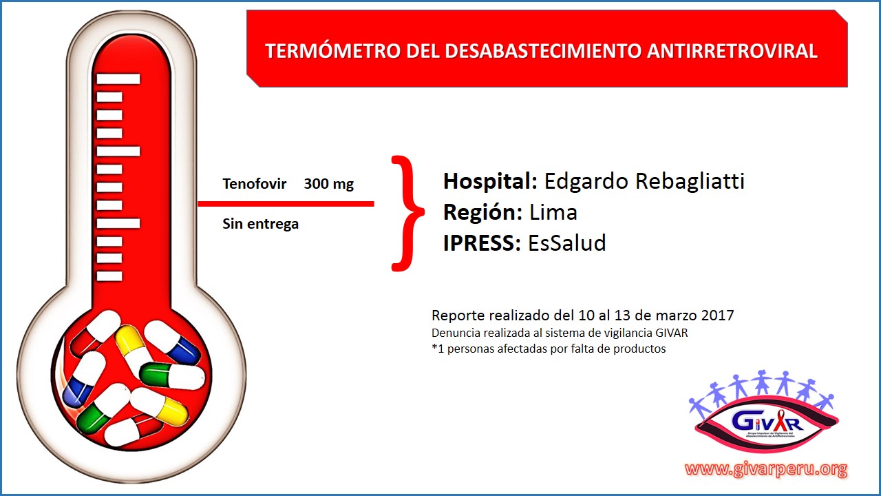 Por ahora el problema que sufren decenas de personas con VIH, es la falta de medicamento antirretroviral Tenofovir. En el hospital del Seguro Social Rebagliati de Lima, no hay este producto desde el 6 de marzo.