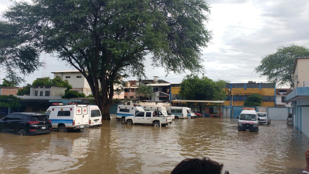 El hospital Cayetano Heredia del Ministerio de Salud, que se ubica en el distrito de Castilla, quedó inundado y se suspendieron las operaciones, pues se cortó el fluido eléctrico para evitar accidentes por descargas eléctricas.