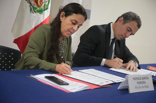 Lima, Perú.- La ministra de Salud, Patricia García, y el ministro de Cultura, Salvador Del Solar, firmaron hoy un convenio de Cooperación Interinstitucional que establece una alianza de colaboración entre ambos sectores para implementar de manera gradual el enfoque intercultural en las diversas acciones priorizadas en salud, y así contribuir a garantizar el ejercicio de los derechos de la población culturalmente diversa del país, especialmente de los pueblos indígenas y de la población afroperuana.
