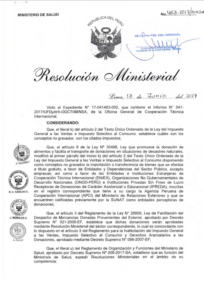 La donación se encuentra acreditada mediante Resolución Ministerial 463-2017, lo cual favorece la continuidad del tratamiento de las personas viviendo con el VIH/Sida y el ahorro de más de 5 millones de soles al Estado, pero el abastecimiento durará sólo 5 meses.