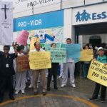 Con carteles en mano y ataúdes de cartón, los manifestantes reclamaron a la gerencia de EsSalud, cancelar la deuda que mantienen desde el mes de octubre con Pro-Vida para que se continúe con la atención médica.