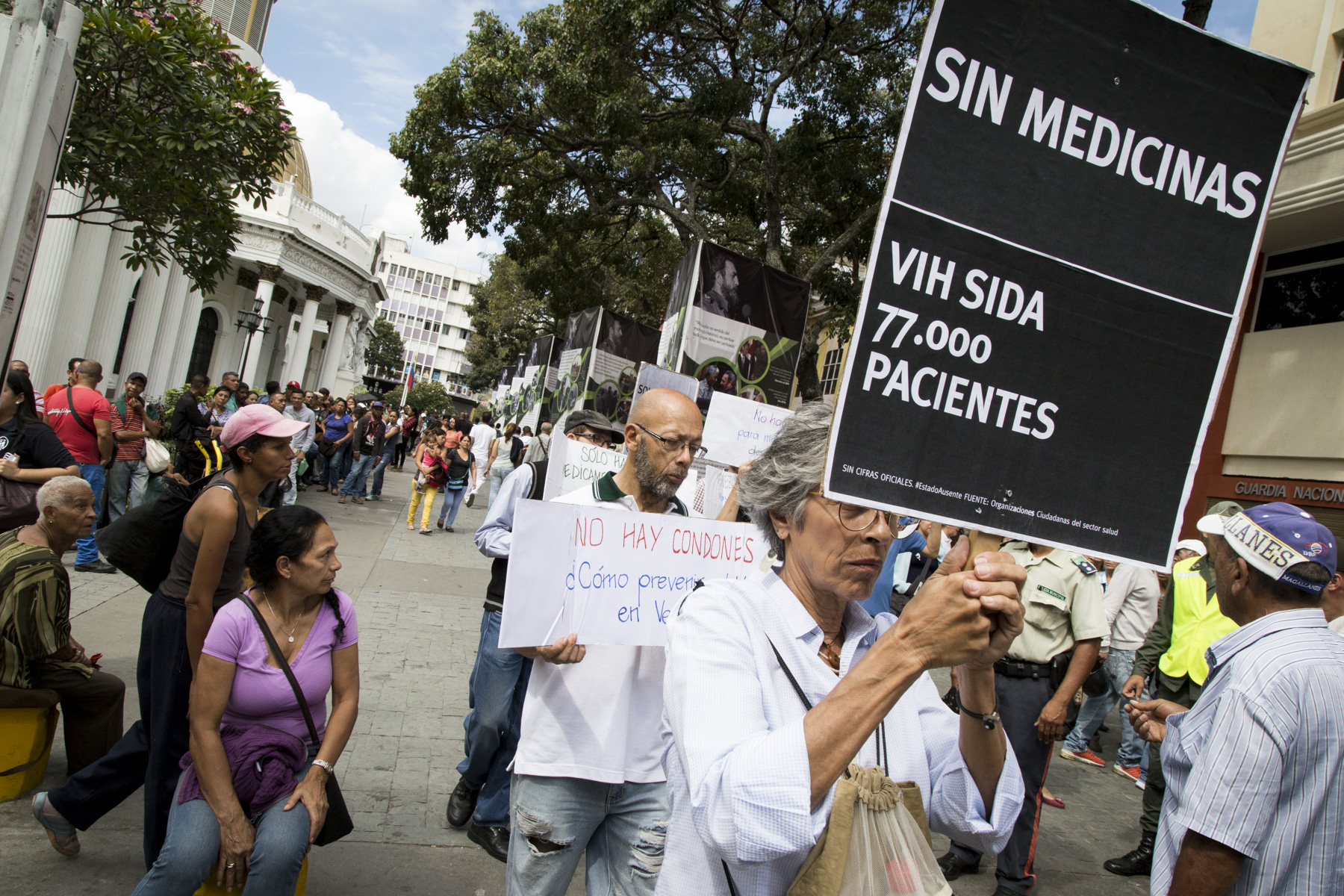 Aliyoner Rodríguez, de 42 años de edad, viajó desde el estado Lara a las 6:00 pm el lunes. Llegó a Caracas a la 1:00 pm y durmió en el terminal La Bandera para denunciar que desde agosto del año pasado no ha podido tomar sus antirretrovirales, debido a que desde hace un año no se ha hecho una nueva orden de compra. Ha perdido 13 kilos, tiene debilidad en su cuerpo y comenzó a perder la dentadura. En 17 años de diagnosticada es la primera vez que tiene una complicación. “Siento que el gobierno piensa que las personas con esta condición dejamos de ser humanos”, contaba.