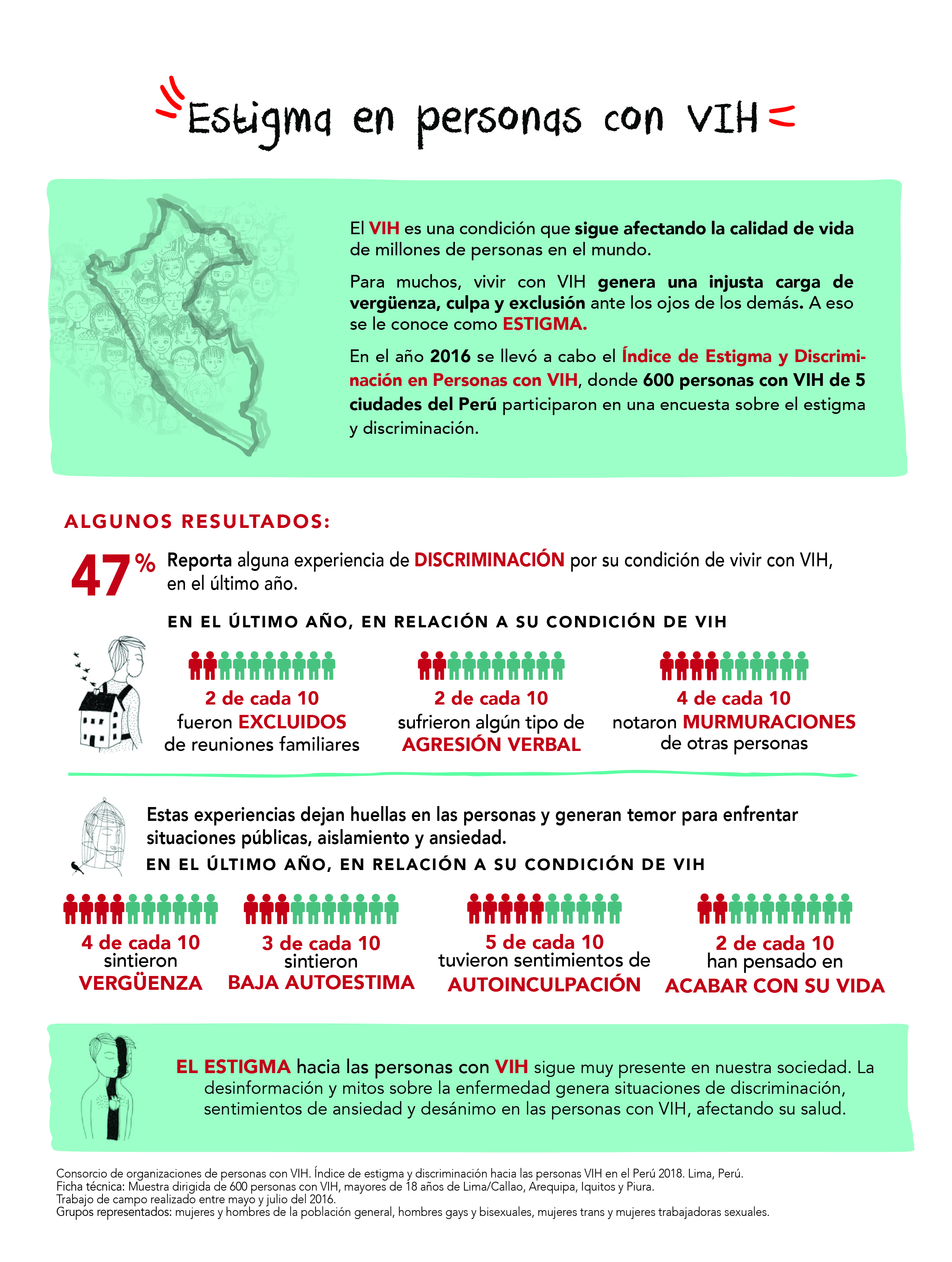 Lima, Perú.- El diagnóstico por el VIH, expone a las personas que viven con esta condición a sufrir actos de violencia, estigma y discriminación, mucho más si son mujeres o personas trans, resalta el estudio sobre el índice de estigma y discriminación realizado en 5 ciudades del país con una muestra de 600 personas que viven con el VIH.