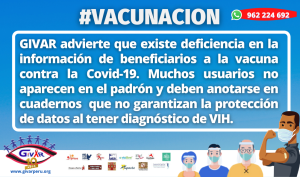 El 19 de junio se inició la vacunación de personas con VIH contra el covid-19, en una ceremonia con autoridades del Ministerio de Salud las cuales daban estimaciones bastante optimistas sobre el alcance del programa; sin embargo, la realidad es otra por la precariedad e informalidad de los registros de usuarios en los establecimientos de salud donde deberían inmunizarse este grupo vulnerable.
