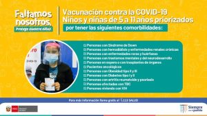 Según la Resolución Ministerial N°809-2021 del Minsa dentro de este grupo poblacional están consideradas las personas con síndrome de Down, enfermedades raras y huérfanas, trastornos mentales y del neurodesarrollo, personas en espera o con trasplantes de órganos, pacientes oncológicos, con obesidad tipo II y III, diabetes tipo I y II, con artritis reumatoide y psoriasis, hemodiálisis y enfermedades crónicas. Asimismo, están consideradas las personas con TBC y viviendo con VIH. Se estima que 35 666 menores de entre 5 y 11 años presentan estas comorbilidades en el país.