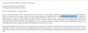 Motivo por el que, en 2018 fue condenado a 4 años de pena privativa de la libertad por el delito de colusión por Quinto Juzgado Unipersonal de Huancayo.