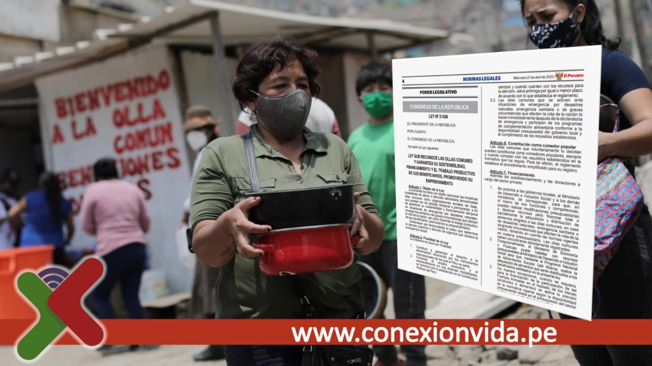 Por ello Gobierno publicó este miércoles la ley N° 31458 que reconoce a las ollas comunes, garantizando su sostenibilidad, financiamiento y el trabajo productivo de sus beneficiarios. Norma que beneficiará a más de 2 555 mil familias que diariamente acuden a una olla común por alimento.
