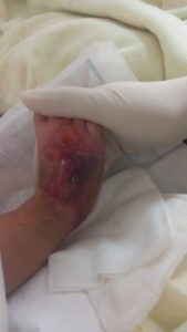 «lo que había sucedido es que el catéter se había salido de su vía y los fármacos o medicamentos que le habían puesto han ingresado en su pie generando una quemadura en segundo grado» nos narra Cesar Vilcapoma.
