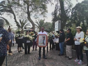 Durante entierro de Carlos Gallagher. Victor Sotelo, director de Sí, da Vida, encabeza el cortejo fúnebre.