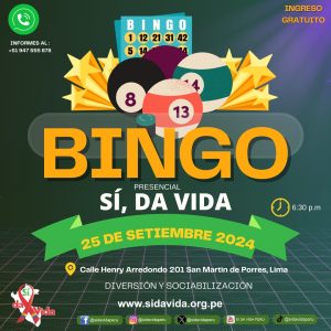 Lima- Perú.- Retomando las actividades presenciales Sí, da Vida realizará este jueves 25 de setiembre, dos actividades de resocialización Grupo de Soporte y Bingo.