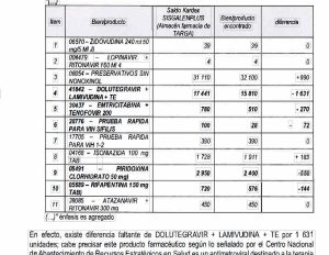 - 1,631 unidades faltantes de Dolutegravir + Lamivudina y Tenofovir, tratamiento antirretroviral clave.